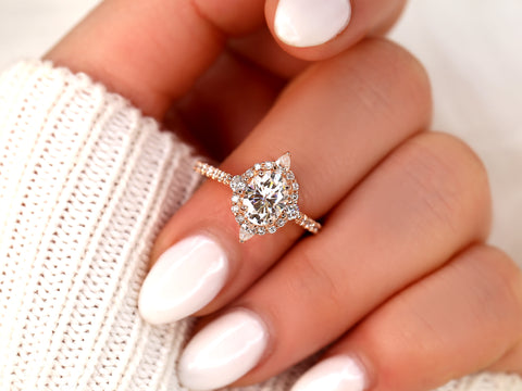 1.50ct Jadis 14kt Gold Moissanite Diamond Unique Polaris Oval Halo Ring - Rosados Box