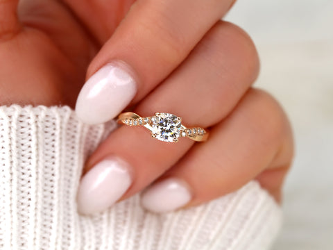 1ct Tressa 6mm 14kt Gold Moissanite Diamond Twisted Solitaire with Accents Ring - Rosados Box