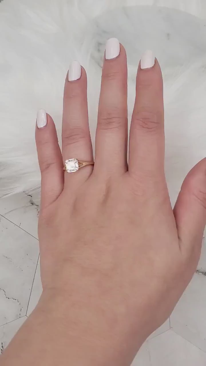 1.50cts Kenzie 7mm 14kt Solid Gold Moissanite Dainty Minimalist Mermaid Split Asscher Solitaire Engagement Ring