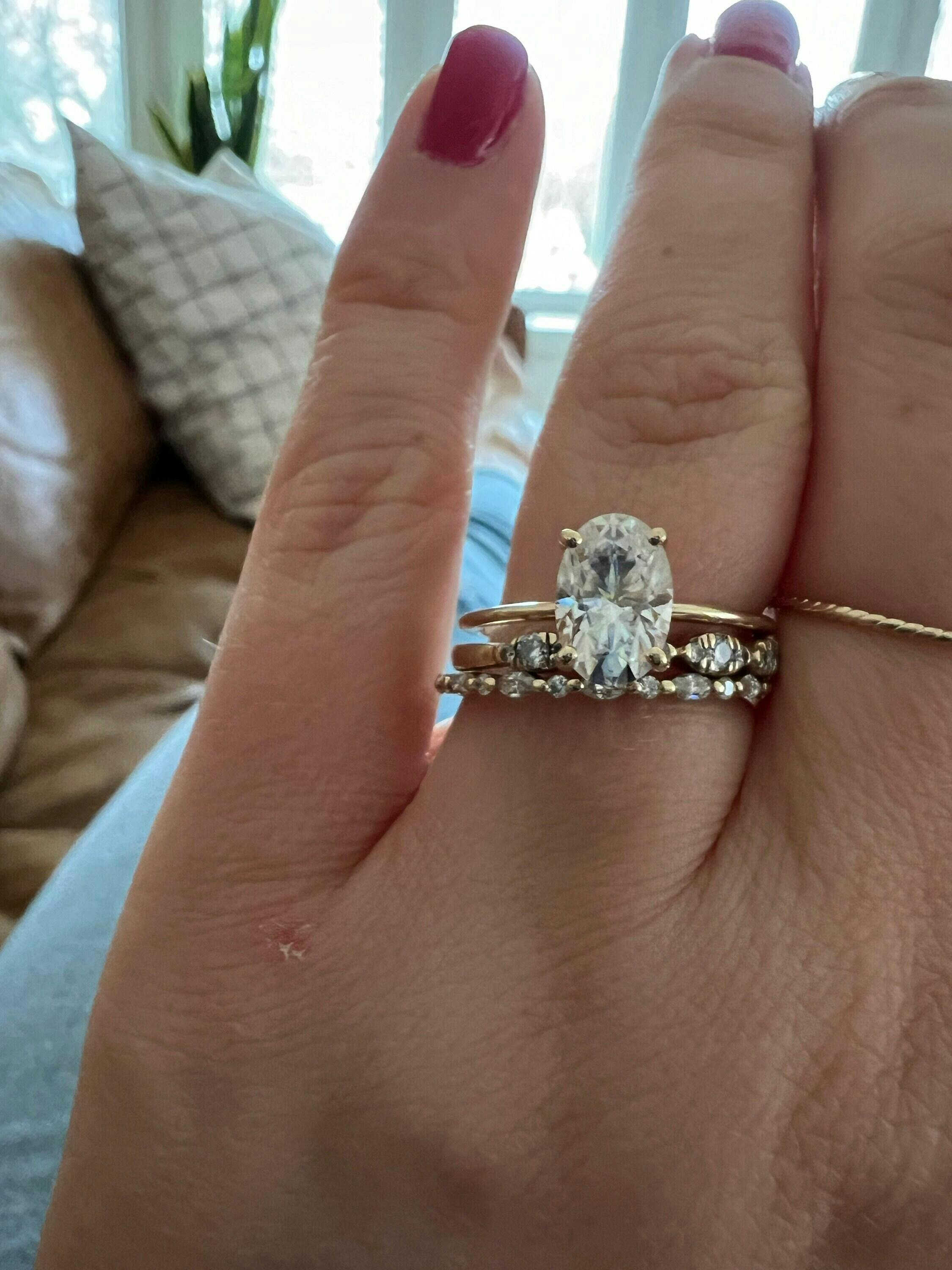 The Layla Ring is the definition of dainty elegance with a minimalist edge. Featuring a 9x6mm oval NEO moissanite, this timeless solitaire shimmers with captivating brilliance on an ultra-slim 14kt gold band—available in rose, white, or yellow. Designed to be effortlessly versatile, Layla pairs beautifully with dainty stacking rings to create a fuller, more personalized look. A long-time favorite in our collection, this classic silhouette is perfect for engagements, anniversaries, or any romantic occasion, offering a balance of simplicity and sparkle that never goes out of style.