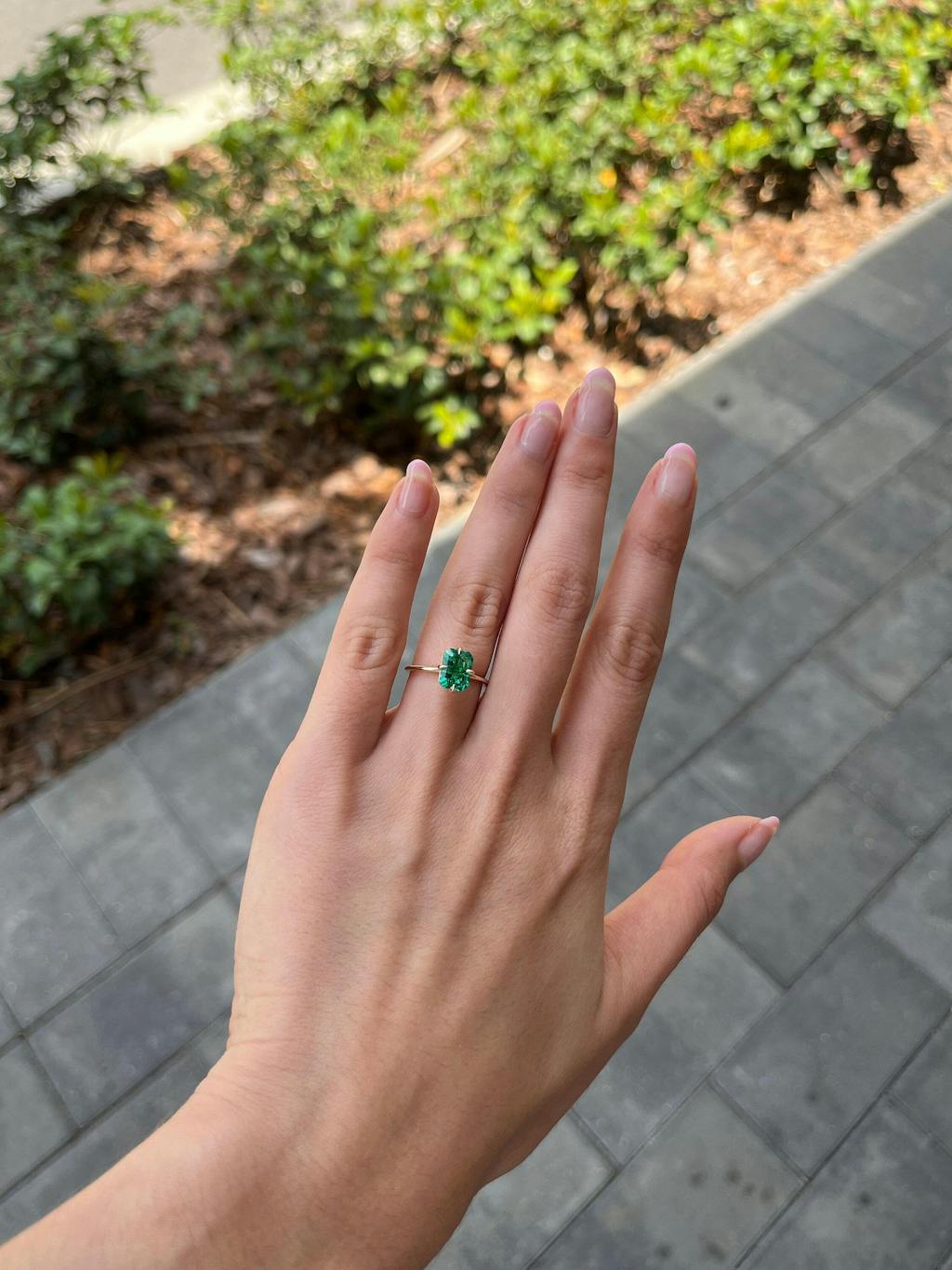 The Ruth ring highlights timeless elegance with a bold touch of color. At its center rests an 8x6mm emerald-cut emerald, glowing with rich green brilliance. Set in a dainty 14kt gold solitaire, the gem is mounted in a classic compass orientation and secured with talon prongs for added durability and sparkle. A perfect balance of simplicity and sophistication, Ruth is an heirloom-worthy piece designed to shine for a lifetime—ideal for engagements, anniversaries, or celebrating life’s special moments.