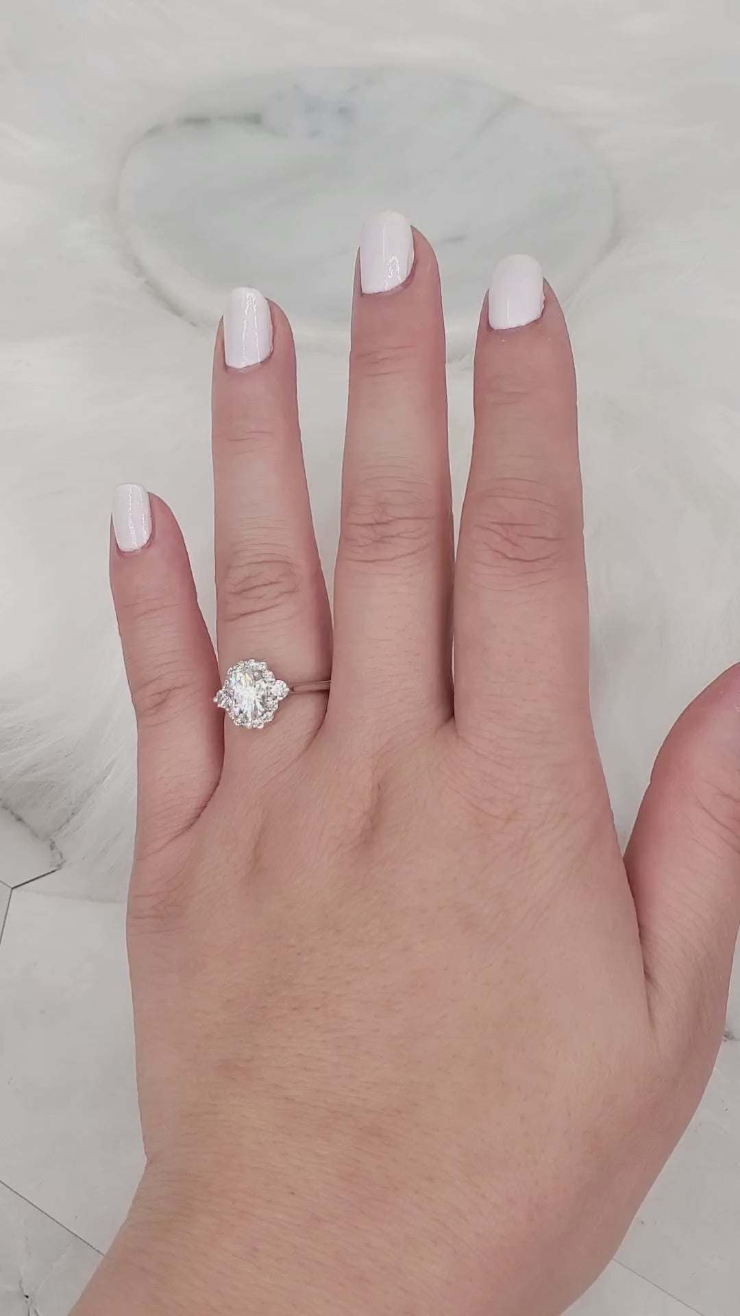 1.50ct Britney 8x6mm 14kt WHITE Gold Moissanite Diamonds Unique Oval Halo Ring - Rosados Box