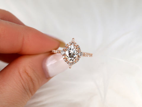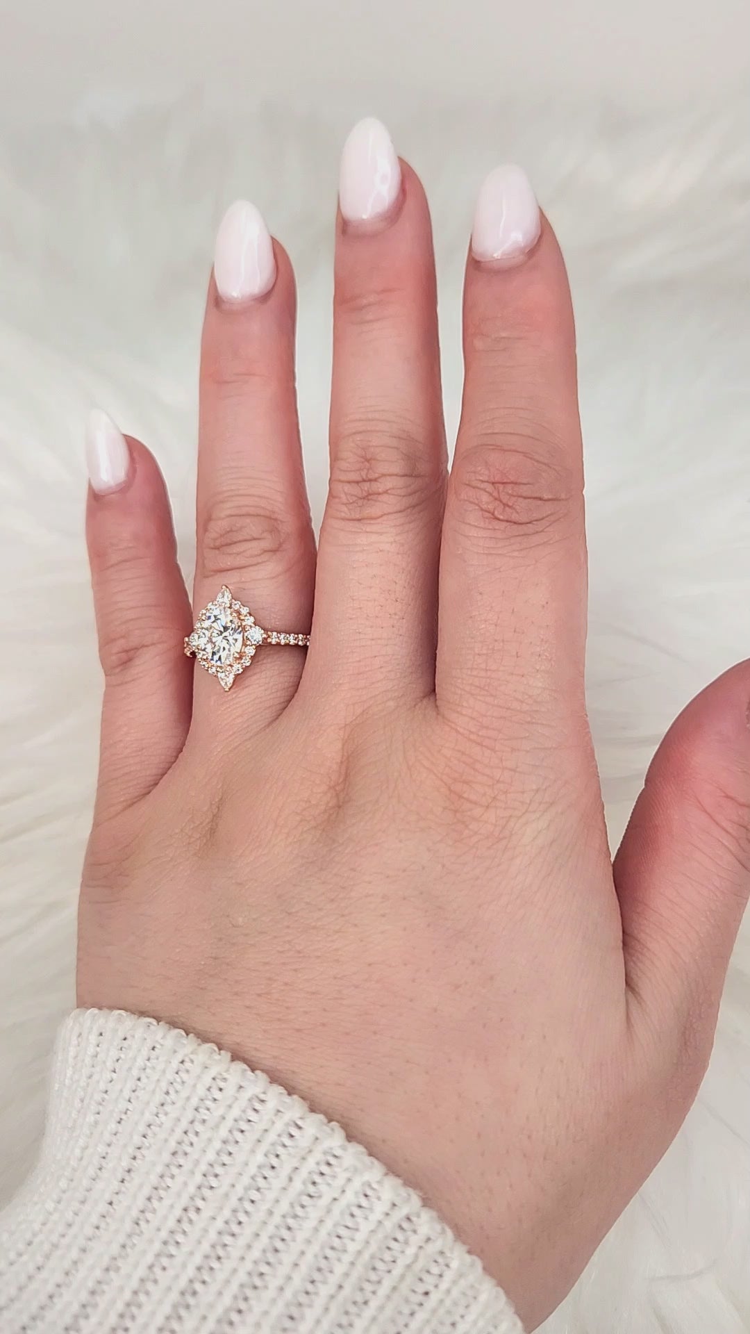1.50ct Jadis 14kt Gold Moissanite Diamond Unique Polaris Oval Halo Ring - Rosados Box