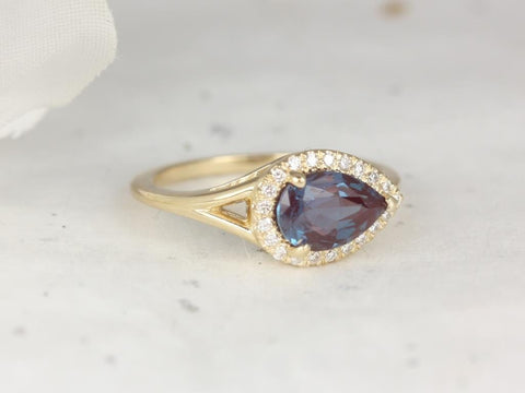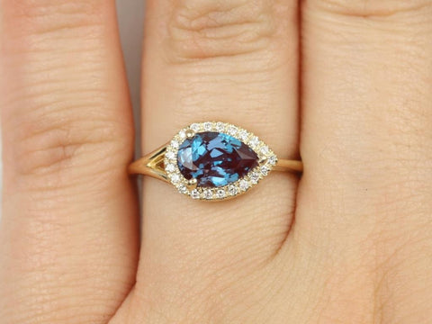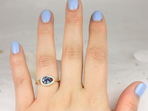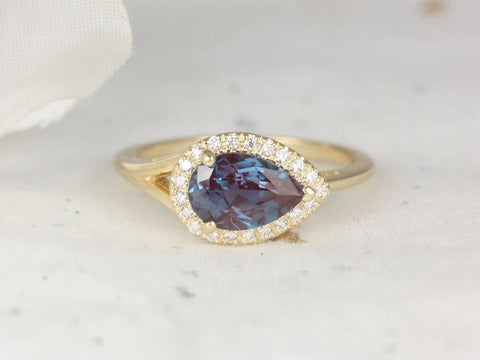 LeStrange 9x6mm 14kt Gold Alexandrite Diamond Split Shank Dainty East West Halo Ring, Unique Halo Ring, June Birthstone, Rosados Box