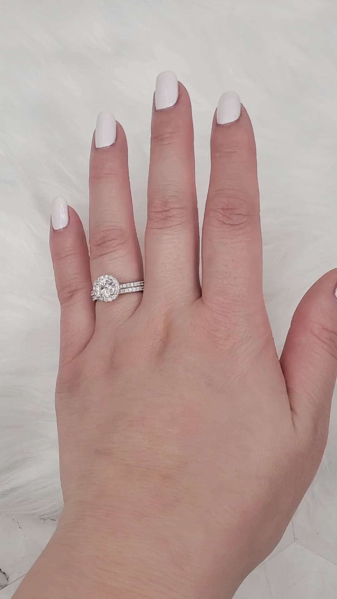 1ct Callie 6.5mm 14kt White Gold Forever One Moissanite Diamond Round Halo Bridal Set