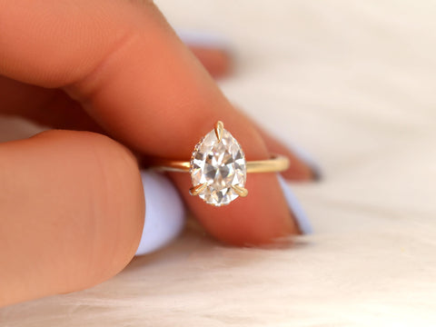 2ct Winnie 10x7mm 14kt Moissanite Diamond Pear Hidden Halo Ring