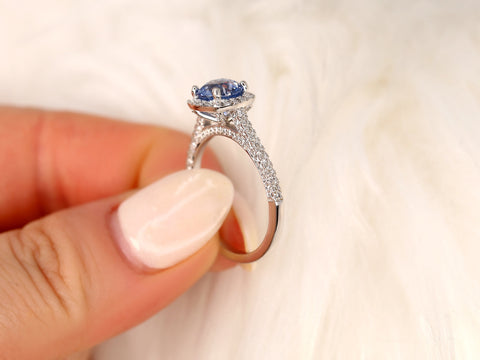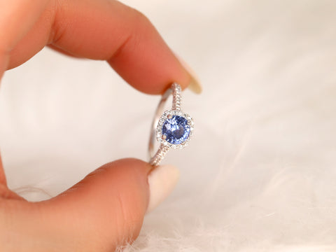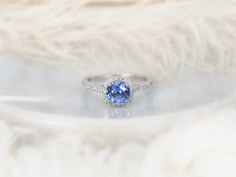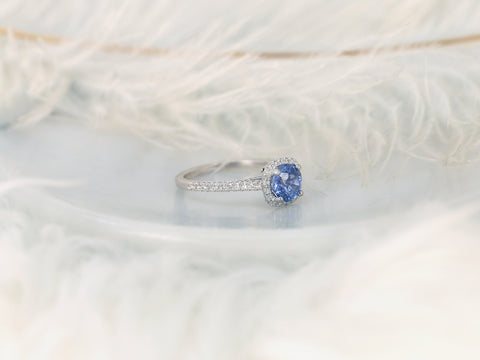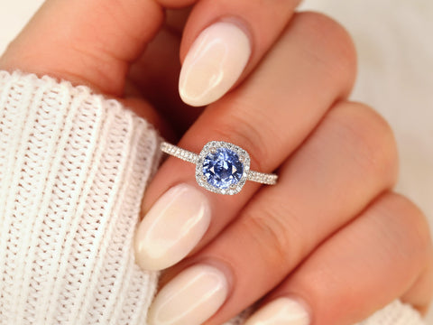 1.74ct Ready to Ship Bonnie 14kt Cornflower Blue Sapphire Art Deco Cushion Halo Ring,Unique Sapphire Ring,Anniversary Gift,September Gift