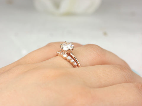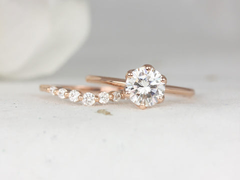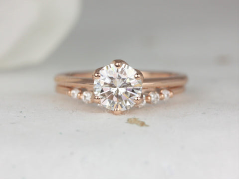 1.25ct Edith 7mm & Nova 14kt Rose Gold Round Moissanite Diamond Dainty Thin 6 Prong Bridal Set