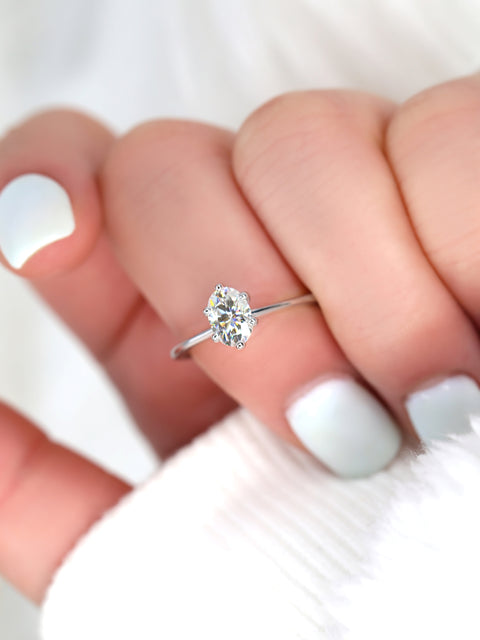 Home/Solitaire Rings/1ct Skinny Rhea 7x5mm 14kt Gold Moissanite 6 Prong Oval Solitaire Ring