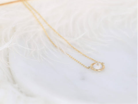 Timeless and versatile, the Brooke Necklace features a sparkling 5mm moissanite in a dainty floating solitaire design. Perfect for everyday wear, this minimalist piece shines beautifully on its own or can be layered with other necklaces for a chic, boho-inspired look. A true jewelry staple, handcrafted in 14kt gold and available in your choice of yellow, white, or rose. Looking for another gemstone? Our consultants are happy to help customize your Brooke.