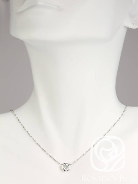 0.50ct Brooke 5mm 14kt Gold Moissanite Solitaire Floating Necklace - Rosados Box