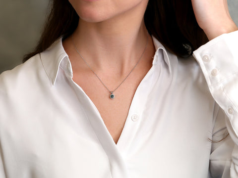 0.59ct Gemma 14kt White Gold Teal Sapphire Diamond Round Halo Necklace