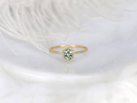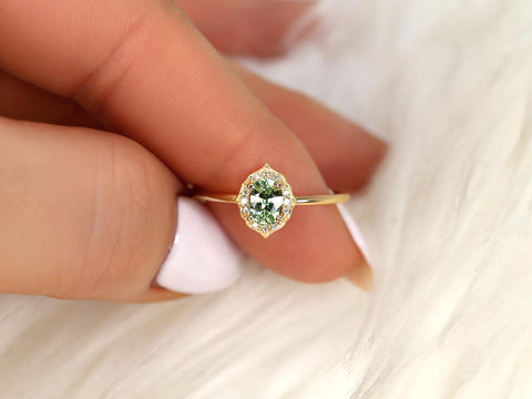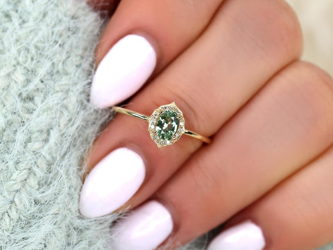 0.64ct Mini Mae 14kt Mint Tea Teal Sapphire Diamond Oval Halo Ring