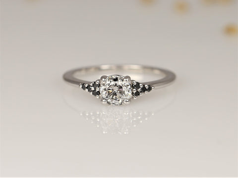 Bold and distinctive, the 0.72ct Malia ring reimagines classic sparkle with an edgy twist. At its heart lies a salt and pepper diamond, each with its own one-of-a-kind galaxy of inclusions—making every ring truly unique. Accented with striking black diamonds, this Art Deco–inspired cluster design offers a modern, alternative take on traditional bridal style. Handcrafted in 14kt gold, Maddy is perfect for those who want individuality, beauty, and a story in every stone.
