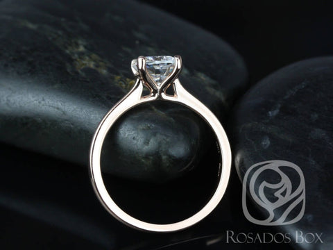 A love story in perfect harmony—the Skinny Florence engagement ring pairs timeless elegance with modern sparkle. The Skinny Florence showcases a 6.5mm cushion-cut moissanite solitaire, set in a sleek cathedral silhouette that feels both dainty and classic. This ring strikes the perfect balance between vintage-inspired charm and contemporary design. Handcrafted in your choice of 14kt rose, white, or yellow gold, this engagement ring is a stunning symbol of forever.