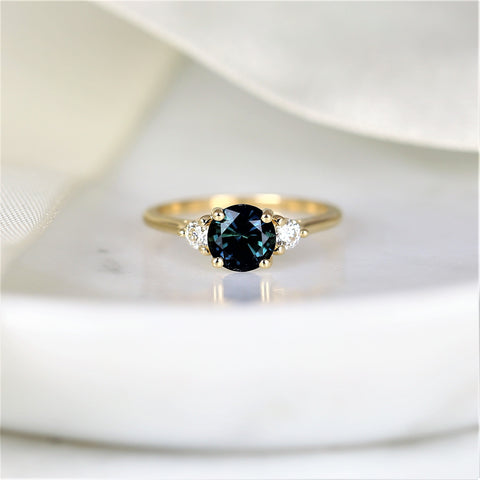 1.48ct Colette 14kt Gold Peacock Teal Sapphire Diamond Three Stone Round Ring