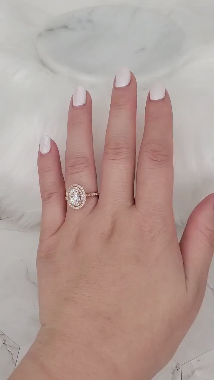 1.50ct Cara 8x6mm 14kt Gold Moissanite Diamond Dainty Double Halo Oval Ring