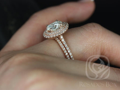 1.50ct Cara 8x6mm 14kt Gold Moissanite Diamond Double Oval Halo Bridal Set