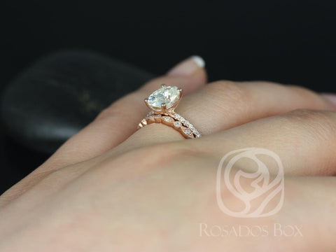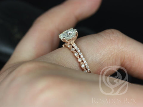 Add effortless sparkle to your love story with the Darcy Bridal Set. At its center shines an 8x6mm oval moissanite, set on a shimmering pavé diamond shank that sparkles from every angle. Paired with a Gwen diamond band, this timeless duo is handcrafted in your choice of 14kt rose, white, or yellow gold. Romantic, elegant, and endlessly versatile, Darcy is the perfect set to mark your forever in style.
