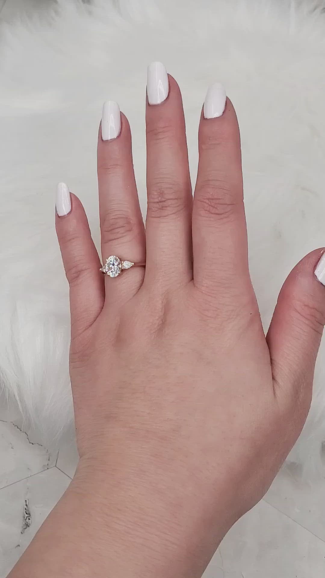 1.50ct Emery 8x6mm 14kt Gold Moissanite Diamond Three Stone Oval Ring