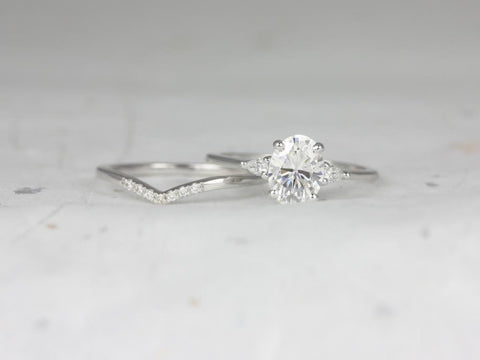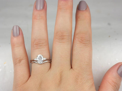 1.50ct Petite Emery 8x6mm & Momo 14kt Gold Moissanite Diamond Oval Bridal Set