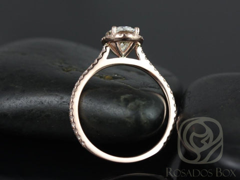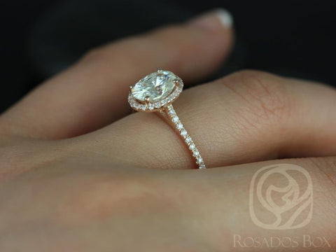 This Rachel engagement ring is the perfect way to say 'forever'. Its stunning rose gold design with a dainty micropave oval halo and a fun twist on a classic is sure to win over her heart. Move over ordinary, this ring brings sparkle and style!