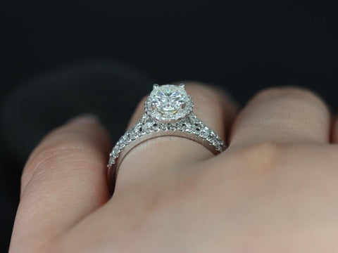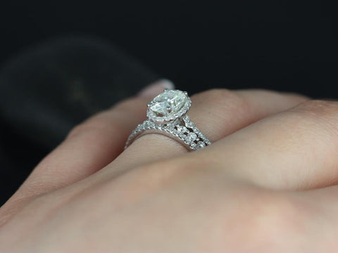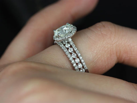 1.50ct Rebecca 8x6mm & Petite Naomi 14kt Gold Moissanite Diamond Oval Halo TRIO Bridal Set