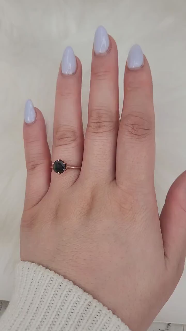 Bold yet refined, the Edith Solitaire is a statement in sleek sophistication. At its heart glows a stunningly unique 1.78ct black diamond—striking, moody, and effortlessly chic. Handcrafted in warm 14kt rose gold, this solitaire design embraces clean lines and minimalist beauty while letting the center stone’s intrigue shine. Made in Chicago with expert craftsmanship, Edith is perfect for the modern romantic who loves jewelry that’s timeless with a daring edge.