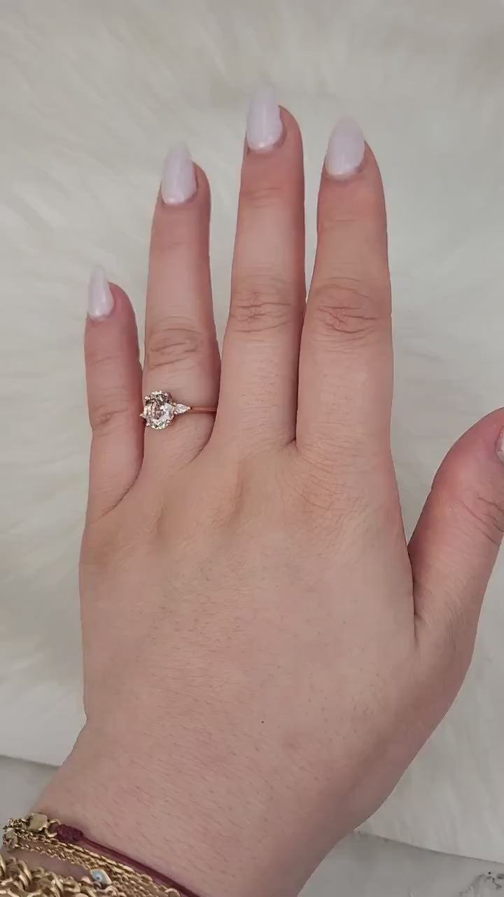 Home/Collections/1.95ct Petite Emery 14kt Rose Gold Blush Peach Sapphire Diamond Three Stone Ring