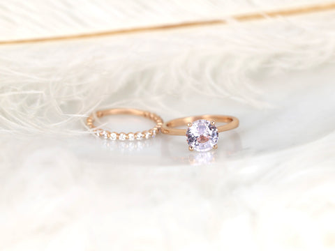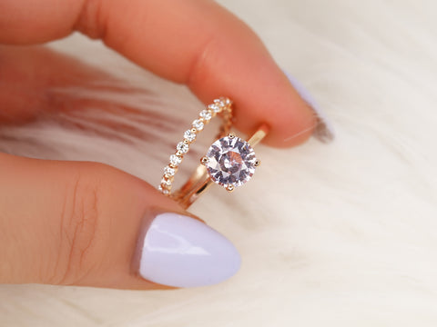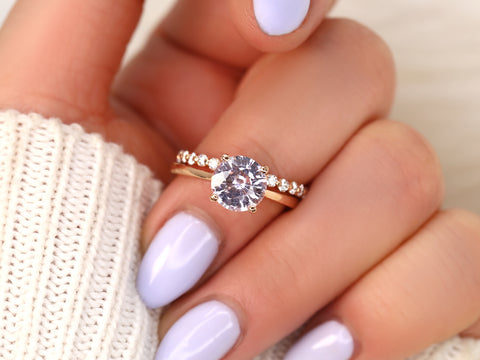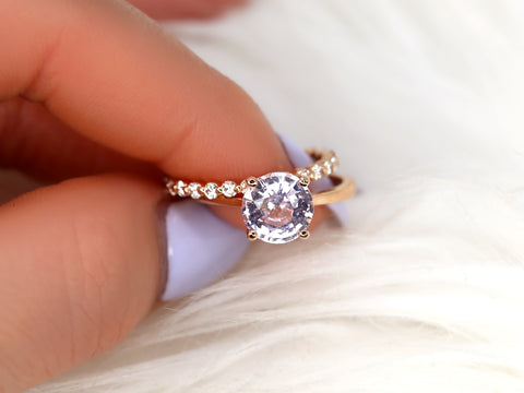 2.39ct Skinny Flora & Petite Naomi 14kt Icy Lavender Blush Sapphire Diamond Solitaire Bridal Set