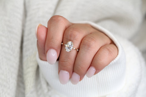 2.50ct Alix 10x7mm 14kt Gold Moissanite Diamond Ultra Dainty Oval Solitaire Ring - Rosados Box