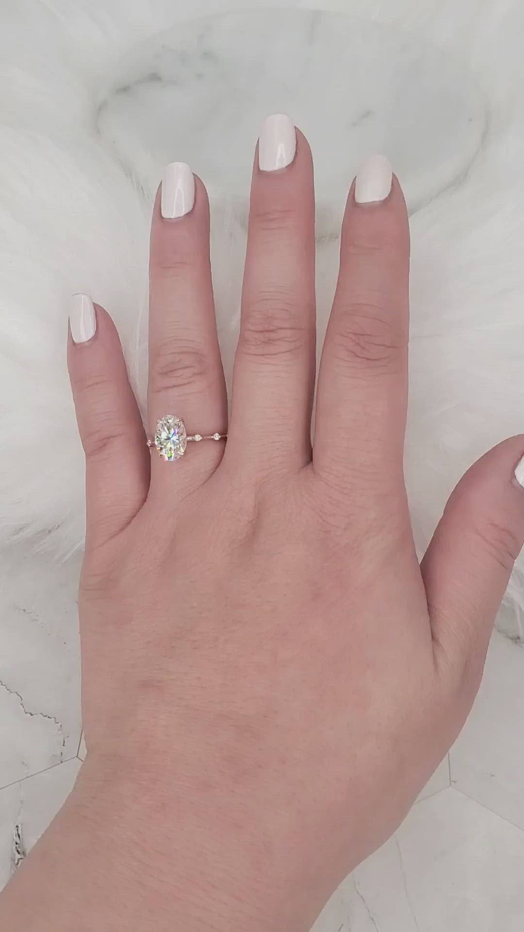 2.50ct Alix 10x7mm 14kt Gold Moissanite Diamond Ultra Dainty Oval Solitaire Ring