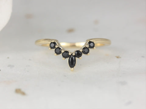 Get your hands on the Marjorie 14kt onyx nesting ring for a one-of-a-kind look! This ring features a distinctive shape and bold black color, handmade in your choice of 14kt gold. Choose your style and stand out from the crowd with this striking piece.