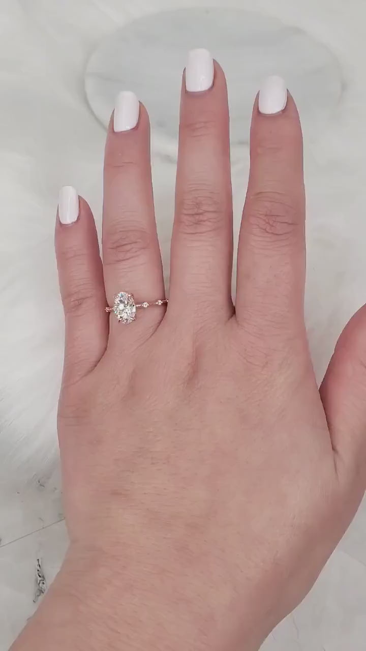 2ct Alix 9x6mm 14kt Gold NEO Moissanite Diamond Ultra Dainty Minimalist Oval Solitaire Ring