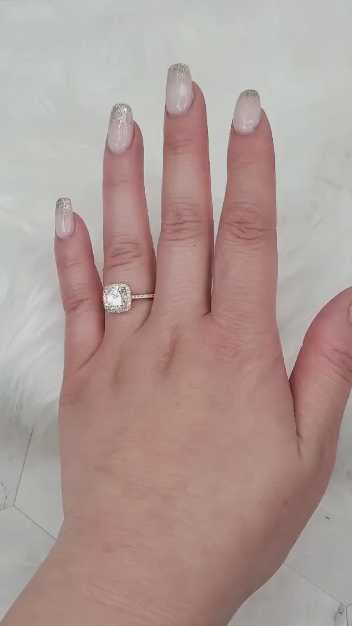 2ct Catalina 7.5mm 14kt Rose Gold Moissanite Diamond Dainty Minimalist Cushion Halo Ring