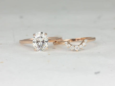 2ct Delia 9x7mm & Rayna 1.0 14kt Moissanite Diamond Oval Bridal Set,Oval Engagement Ring,Oval Wedding Ring Set,Anniversary Gift,Solitaire