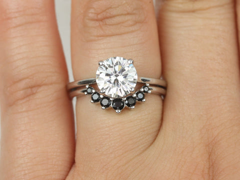 Home/Collections/2ct Dixie 8mm & Rayna 2.0 14kt White Gold Moissanite Black Spinel Round Solitaire Bridal Set