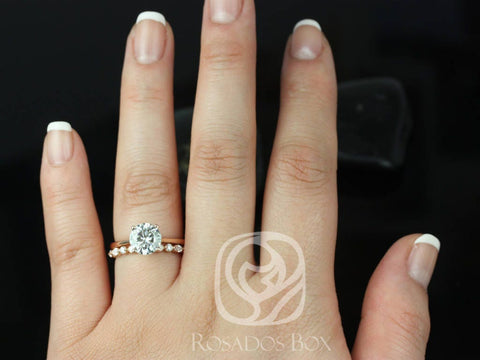 2ct Skinny Flora 8mm & Petite Cher 14kt Gold Moissanite Unique Round Solitaire Bridal Set