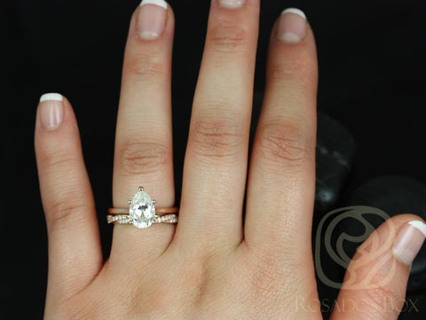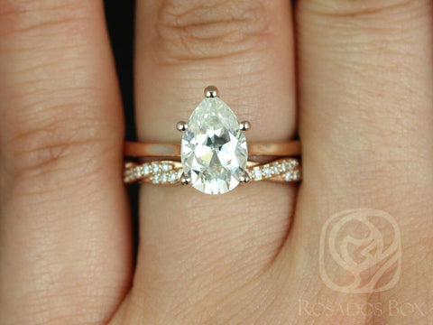 2ct Skinny Jane 10x7mm & Twyla 14kt Gold Moissanite Twisted Rope Pear Solitaire Bridal Set