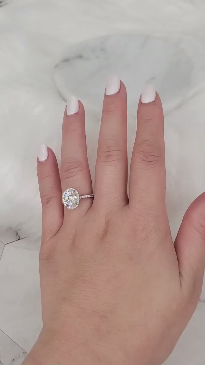 Get ready to be dazzled by the 3ct Federella halo ring! Handmade in your choice of 14kt gold, this dainty ring features a stunning 10x8mm moissanite center stone surrounded by sparkling diamonds on the halo and shank. Elevate your minimalist style with this unique and playful oval ring.
