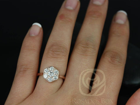 Mosaic Grande 14kt Rose Gold Art Deco Hexagon WITH Milgrain Diamonds Unique Cluster Ring