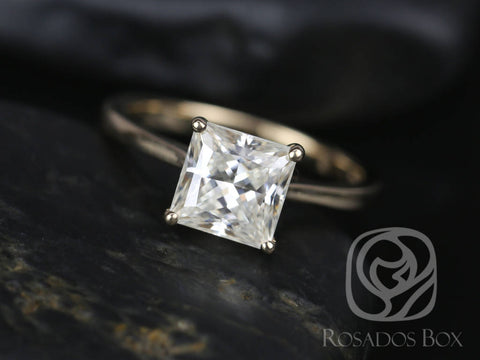 Florentine 7mm 14kt WHITE Gold Forever One GHI Moissanite Minimalist Cathedral Princess Solitaire Engagement Ring