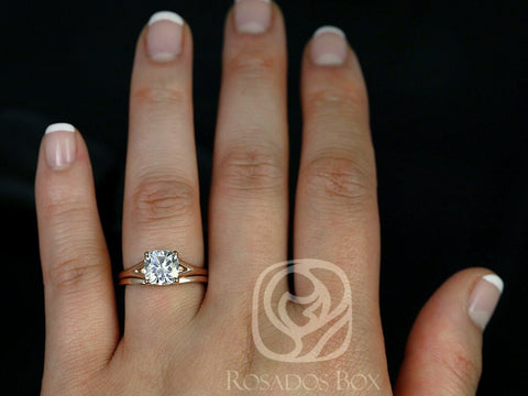 Playful yet timeless, the Khaleesi Wedding Set is perfect for brides who adore classic elegance with a touch of whimsy. At its heart shines a 7.5mm cushion-cut moissanite, set atop a clean split shank that enhances its brilliance. A charming peek-a-boo heart along the gallery profile adds a sweet romantic detail. Paired with a plain solid gold shadow band, this duo offers a unique and stylish twist on traditional design—fun, elegant, and made to celebrate love beautifully.