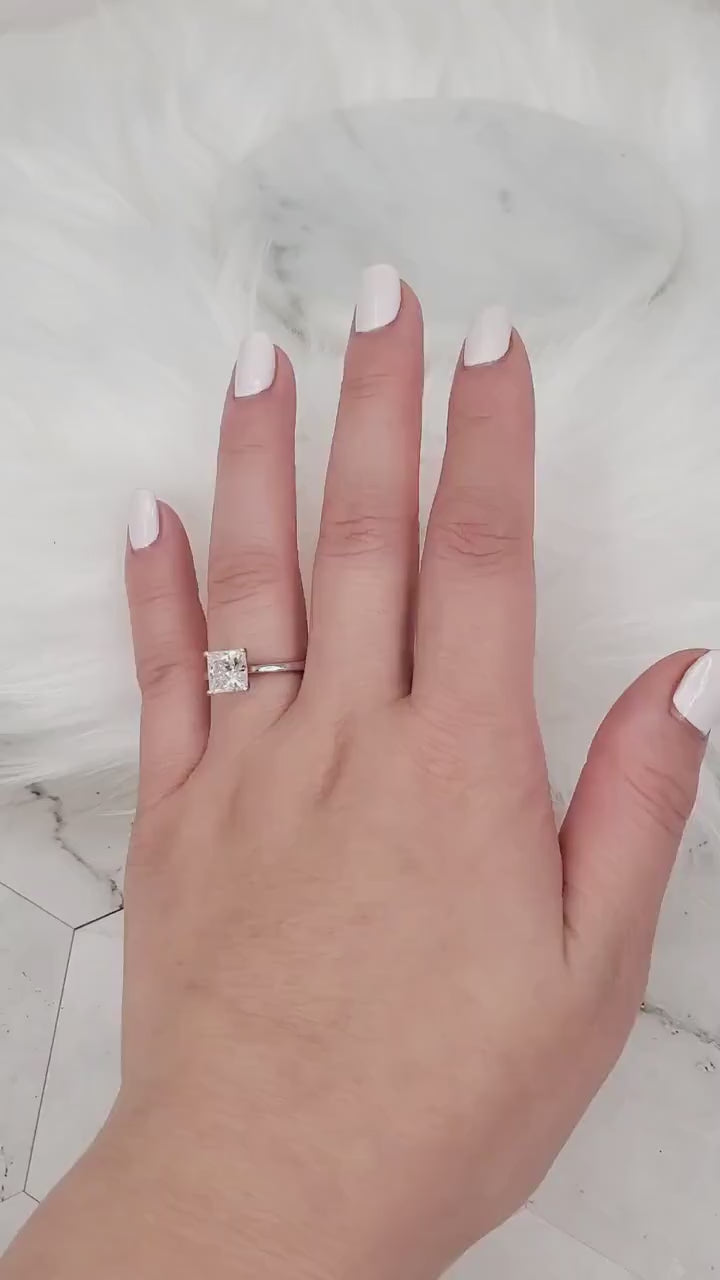 SALE 1.75ct Florentine 7mm 14kt Gold FB Moissanite Dainty Cathedral Princess Cut Solitaire Ring