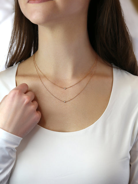 Delicate and timeless, the Ultra Petite Brooke Diamond Necklace is the perfect touch of everyday sparkle. This dainty design features a single brilliant diamond set in a sleek bezel, floating effortlessly on a 14kt gold chain. Whether worn solo for minimalist elegance or layered for added shine, Brooke is a versatile staple handcrafted to elevate any jewelry collection.