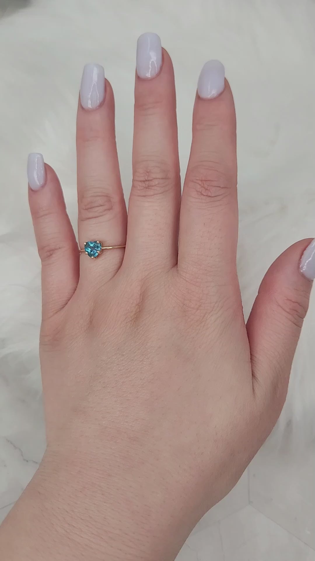 The Ultra Petite Heartley Ring is a sweet symbol of love and individuality. At its center glows a delicate heart-shaped sky blue topaz, capturing light with soft, serene brilliance. Handcrafted in Chicago by skilled artisans, this dainty design is set on a slim 14kt gold band—available in rose, white, or yellow—for a personal touch of color. Minimalist yet striking, Heartley is perfect as a promise ring, gift, or meaningful everyday piece.