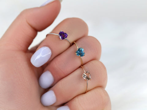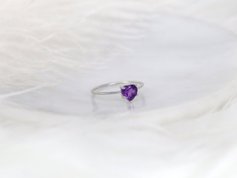 The Ultra Petite Heartley Ring is a sweet symbol of love and individuality. At its center glows a delicate heart-shaped amethyst, capturing light with soft, serene brilliance. Handcrafted in Chicago by skilled artisans, this dainty design is set on a slim 14kt gold band—available in rose, white, or yellow—for a personal touch of color. Minimalist yet striking, Heartley is perfect as a promise ring, gift, or meaningful everyday piece.